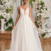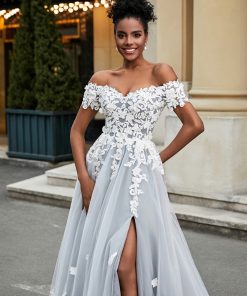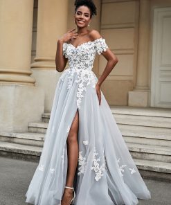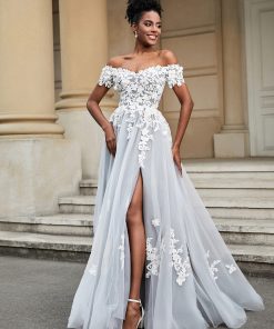 - Indulge in the timeless allure of our Sweetheart Tulle A-line Wedding Dress With Slit. The exquisite silhouette gracefully enhances your figure, while the delicate combination of Tulle and Lace fabric creates an ethereal and romantic look. The alluring slit adds a touch of modern sophistication, and the sweeping brush train completes the ensemble with a touch of glamour. Elevate your special day with this enchanting gown that seamlessly blends classic charm and contemporary elegance.