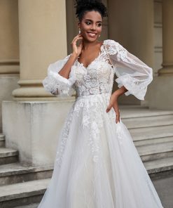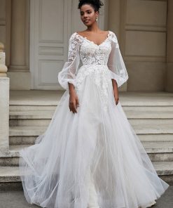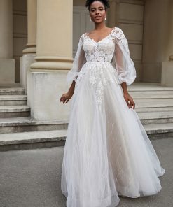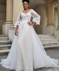 Open Back Long Sleeve Tulle Wedding Dress As Picture