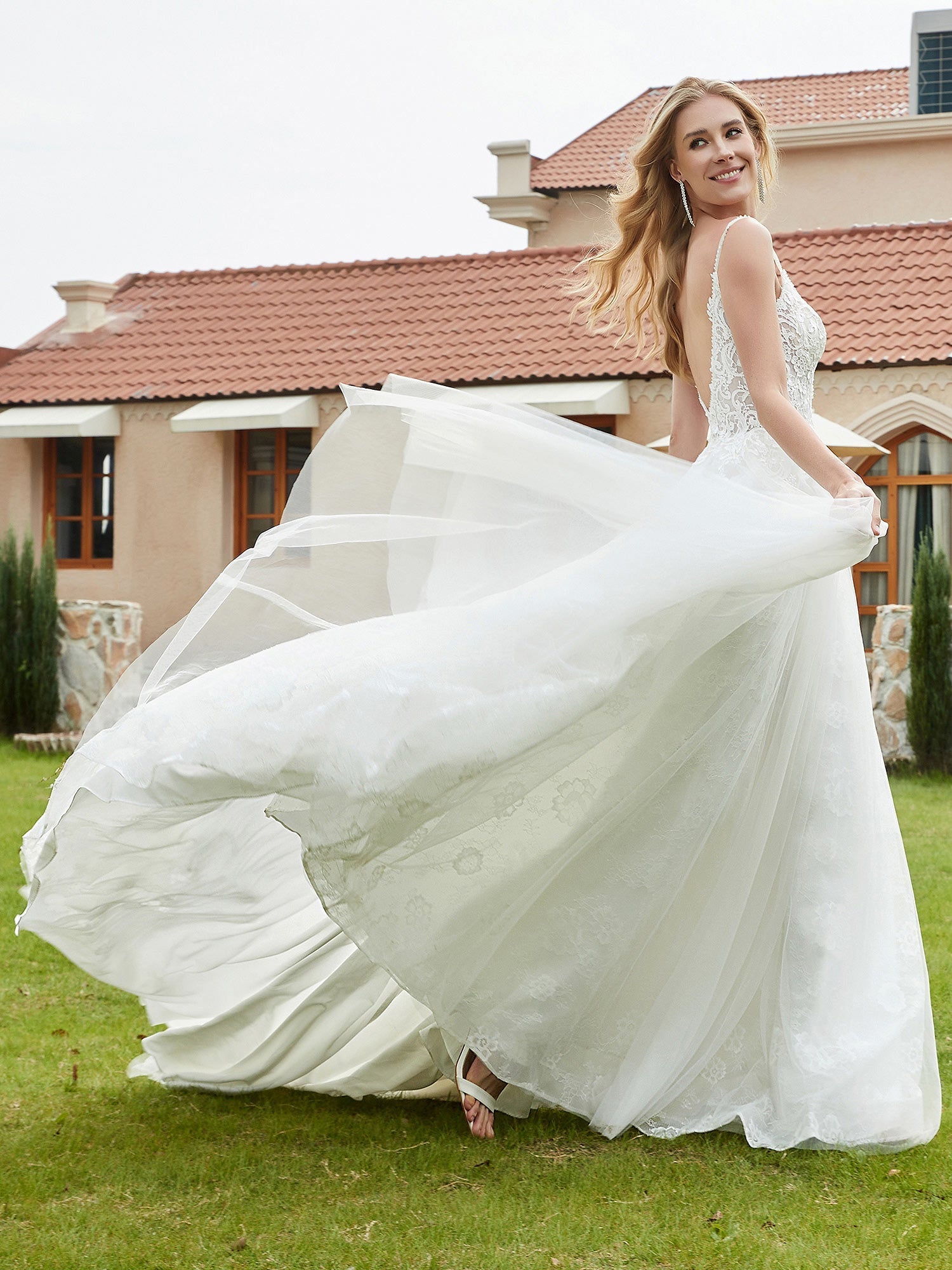 The backless design is a true statement of confidence, allowing you to look radiant as you walk down the aisle.
